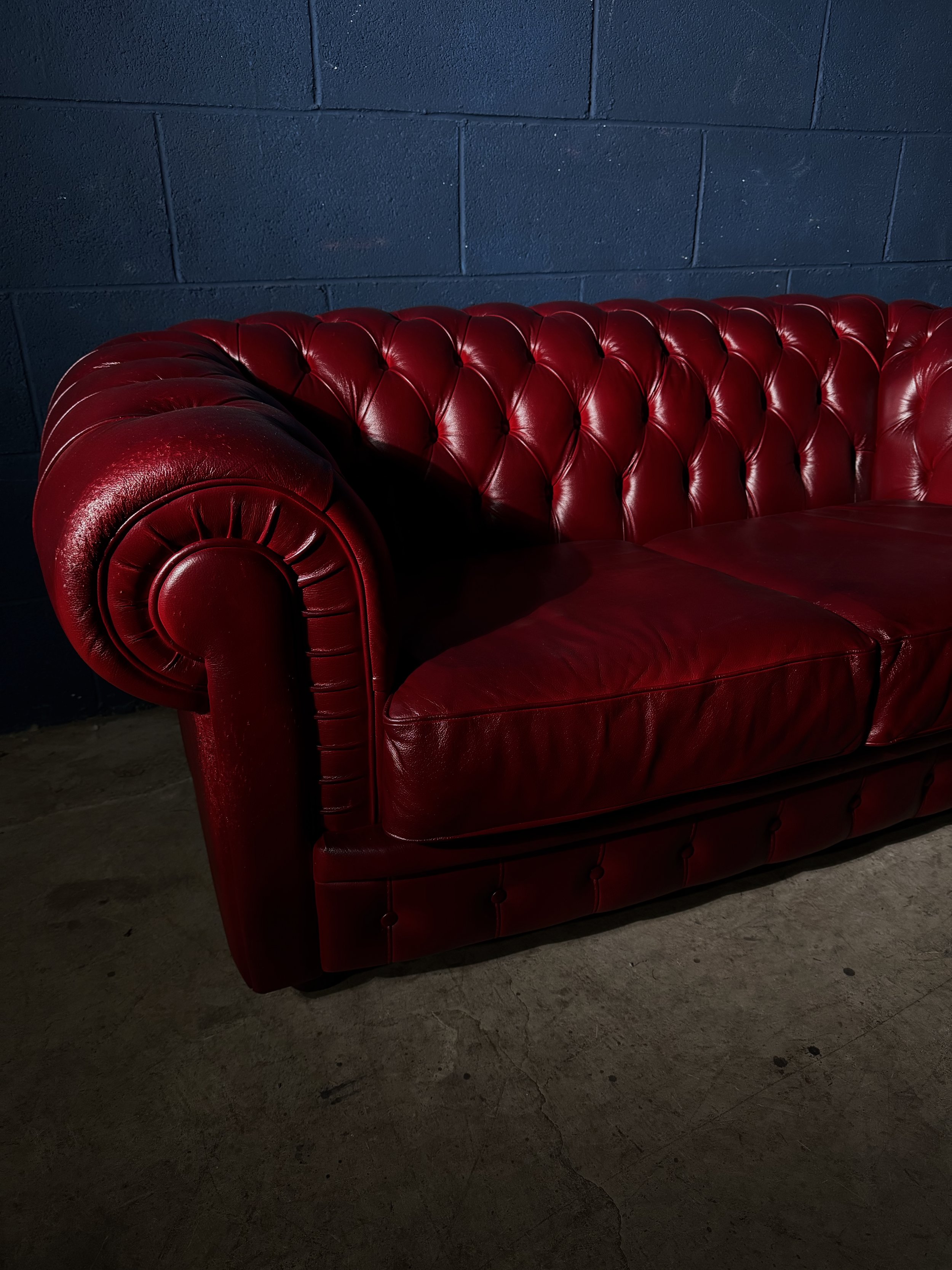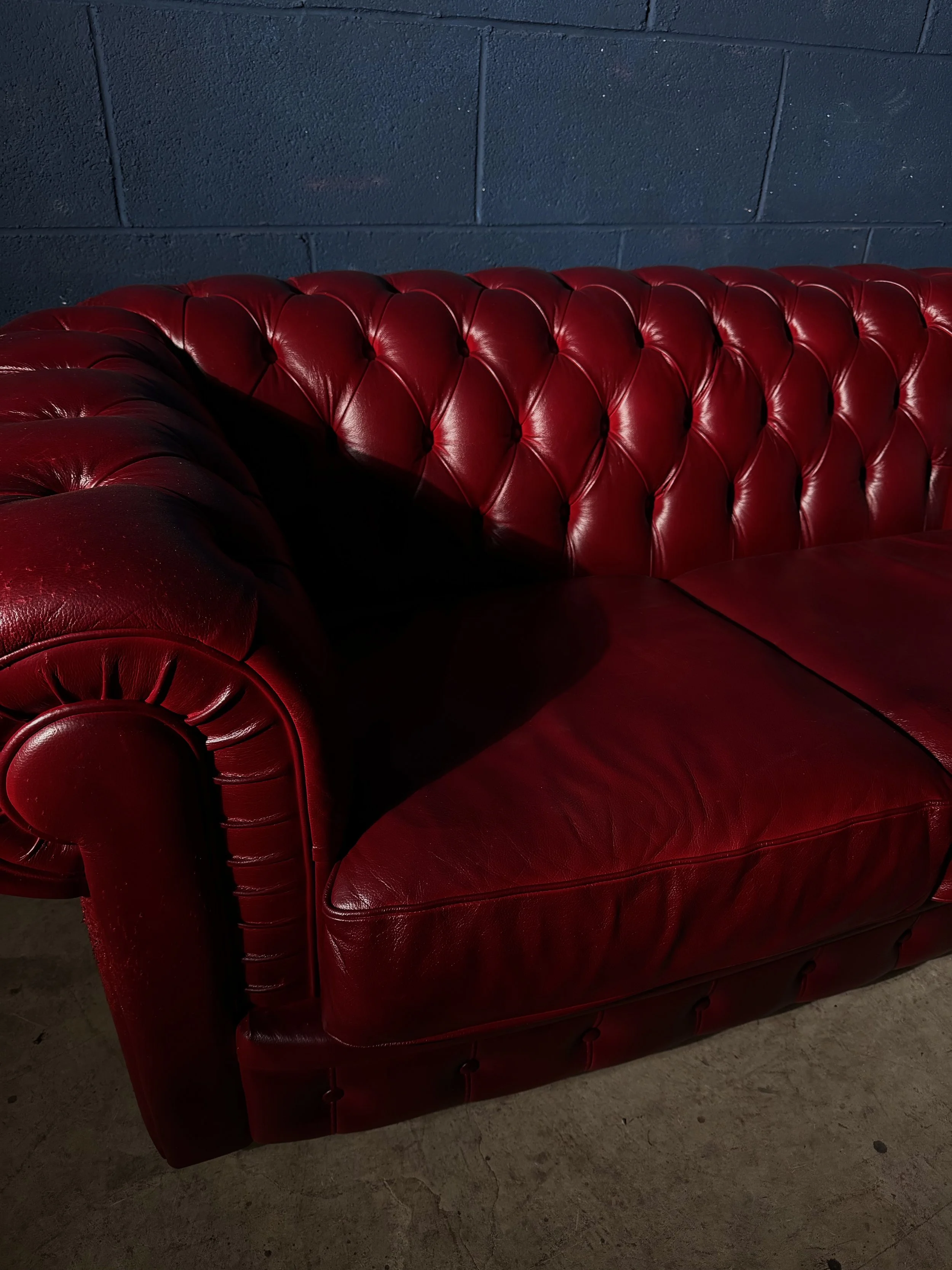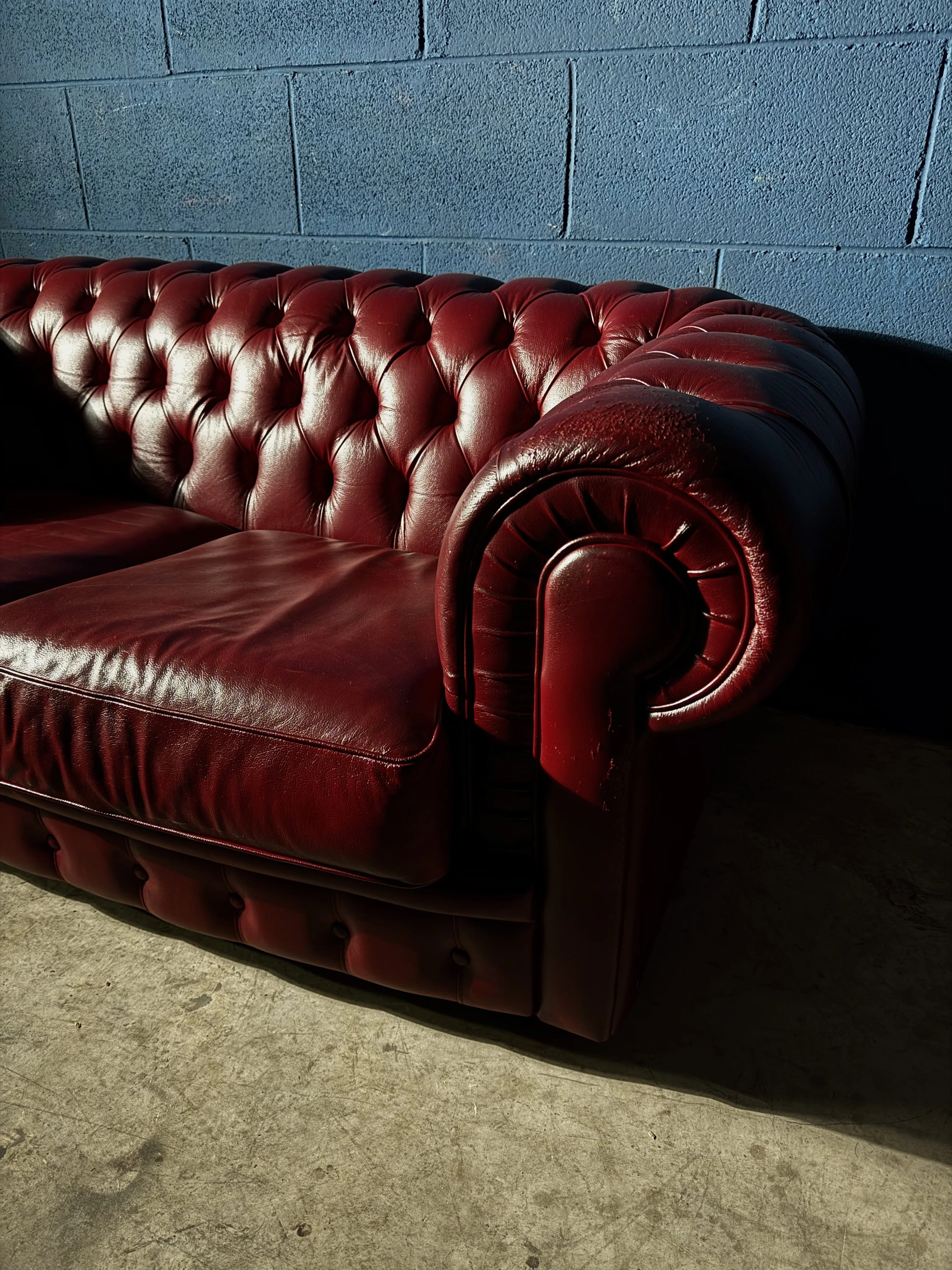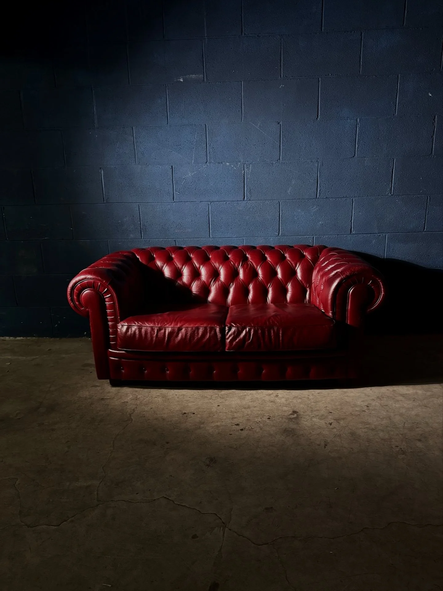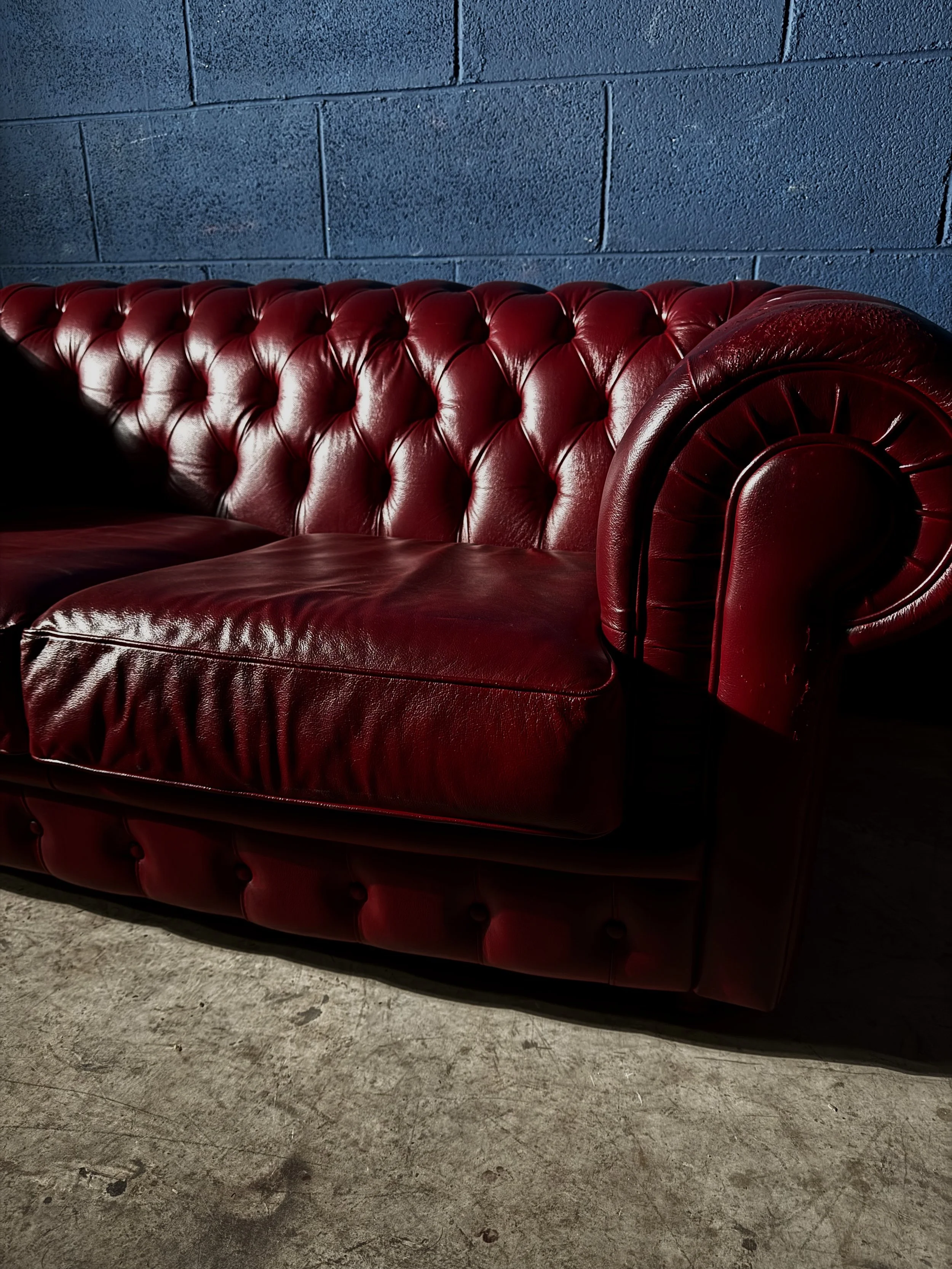 Questo è un divano Chesterfield a due posti, autentico e intramontabile.