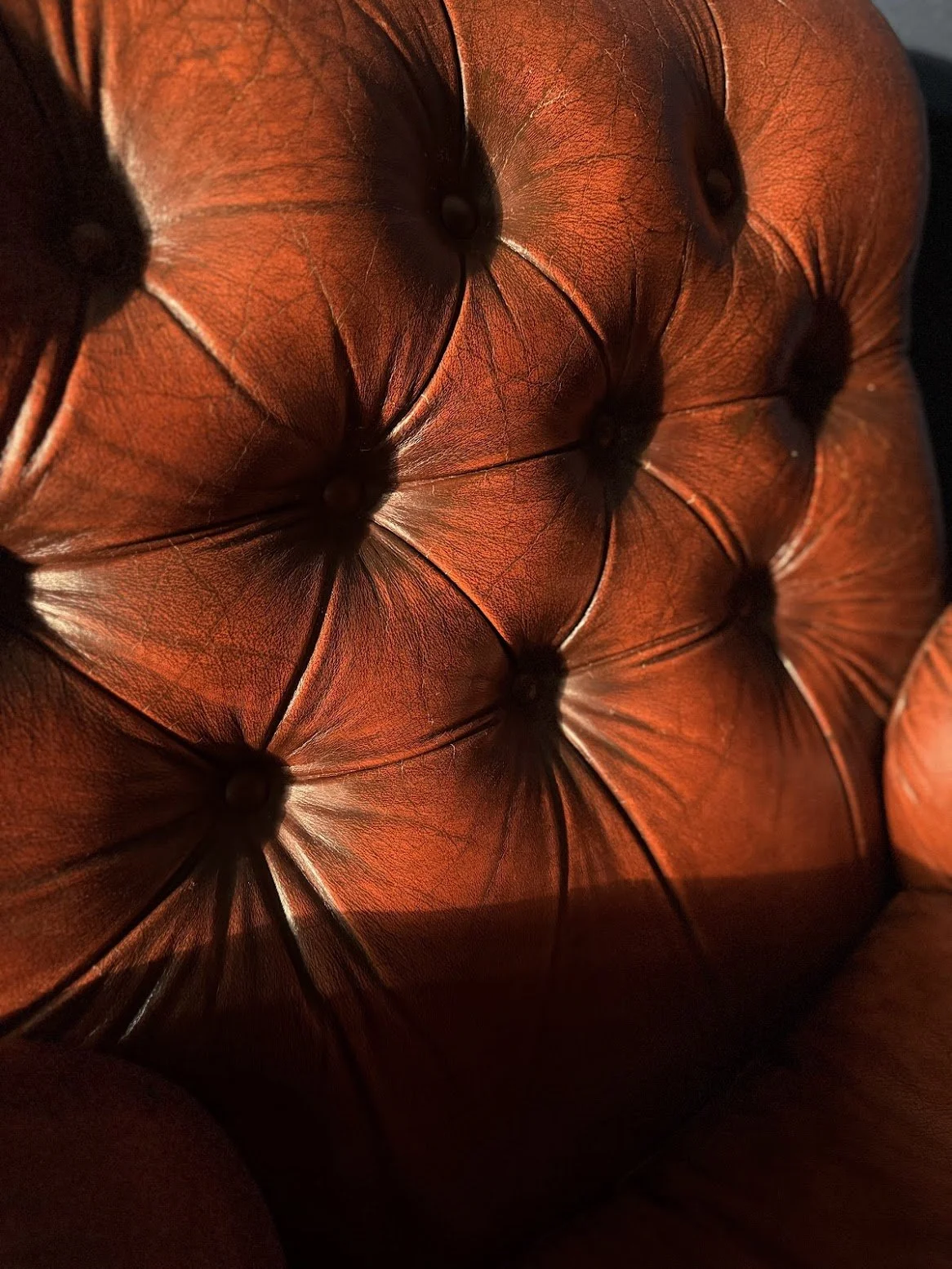 La loro struttura imponente, i braccioli roll-arm e lo schienale alto con lavorazione capitonné evocano immediatamente l’atmosfera dei club inglesi, delle biblioteche vittoriane o dei loft industriali reinterpretati in chiave contemporanea.