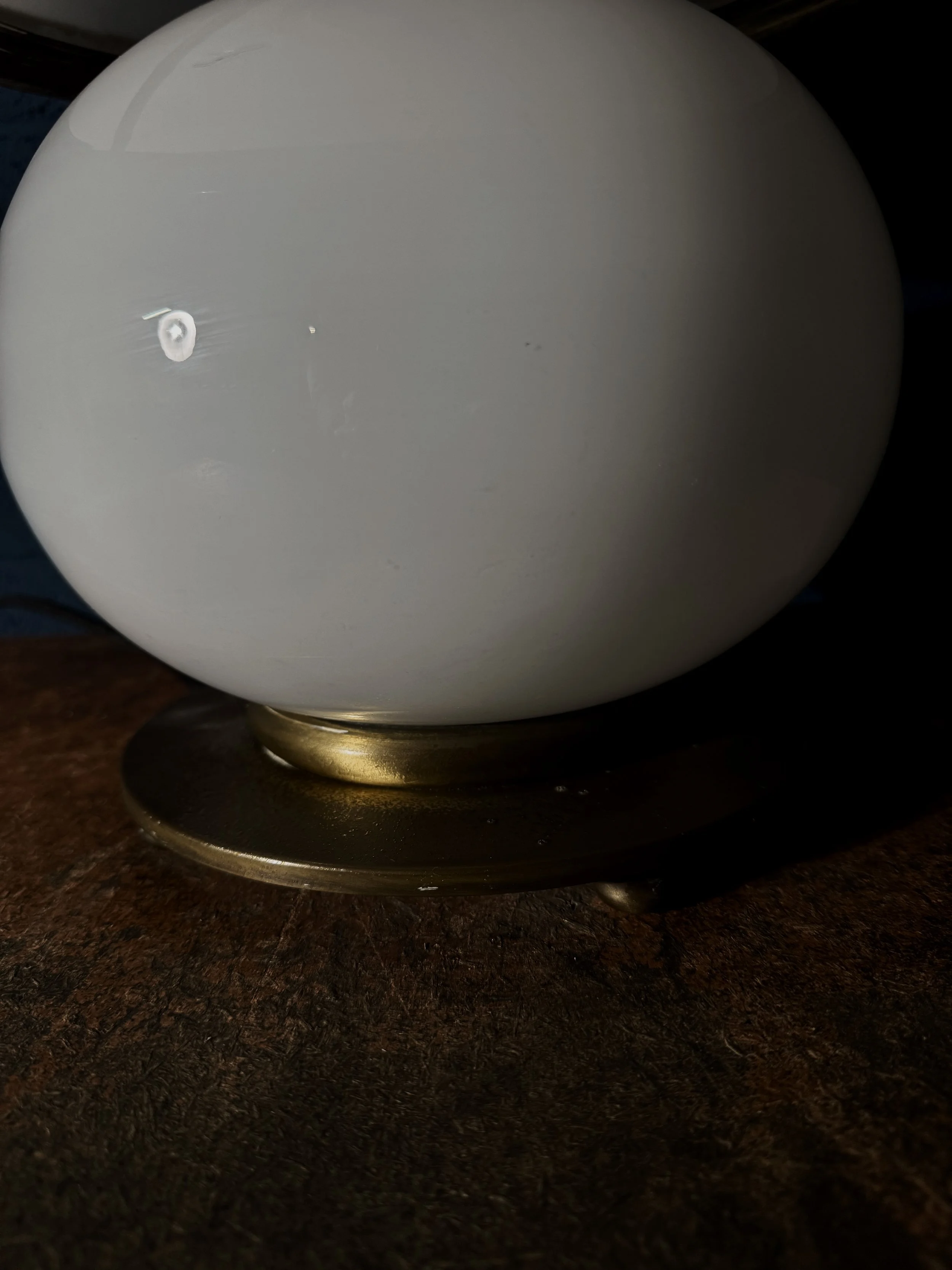 La sua forma sferica, con doppio corpo in vetro opalino bianco, evoca un senso di equilibrio e armonia visiva.
